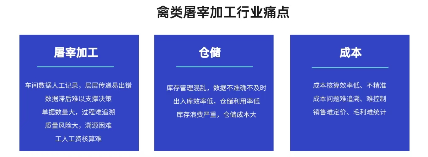 建立高效的全程數(shù)字化管理平臺(tái),屠宰加工流程標(biāo)準(zhǔn)化。對(duì)各環(huán)節(jié)進(jìn)行有效監(jiān)控和分析,減少各環(huán)節(jié)的漏洞,降低廢品率和能耗,降低企業(yè)管理成本。