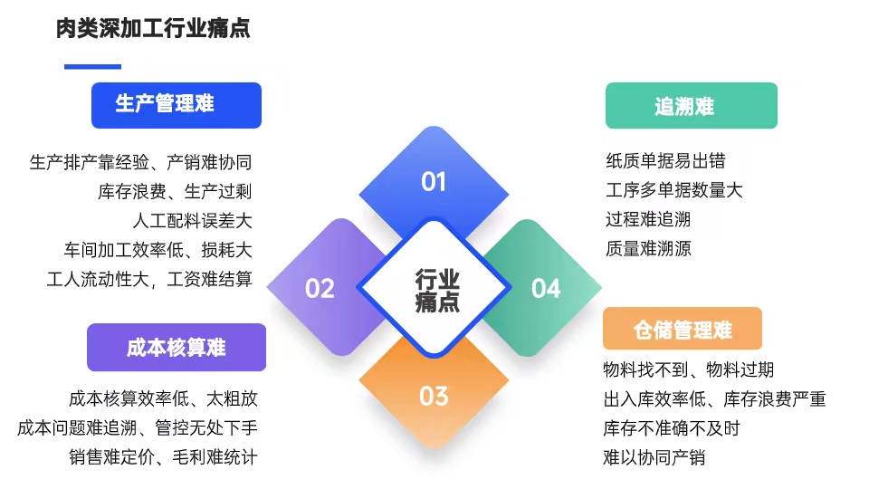 依托云存儲(chǔ)、物聯(lián)網(wǎng)、工業(yè)互聯(lián)網(wǎng)技術(shù),對(duì)原料采購(gòu)、初加工、深加工、冷鏈倉(cāng)儲(chǔ)等全業(yè)務(wù)鏈進(jìn)行信息化升級(jí)和改造,實(shí)現(xiàn)企業(yè)生產(chǎn)成本可控、生產(chǎn)流程責(zé)任可究、全程數(shù)據(jù)電子化、質(zhì)量可追溯等核心價(jià)值,幫助企業(yè)提高整體市場(chǎng)競(jìng)爭(zhēng)力,有效降本增效!